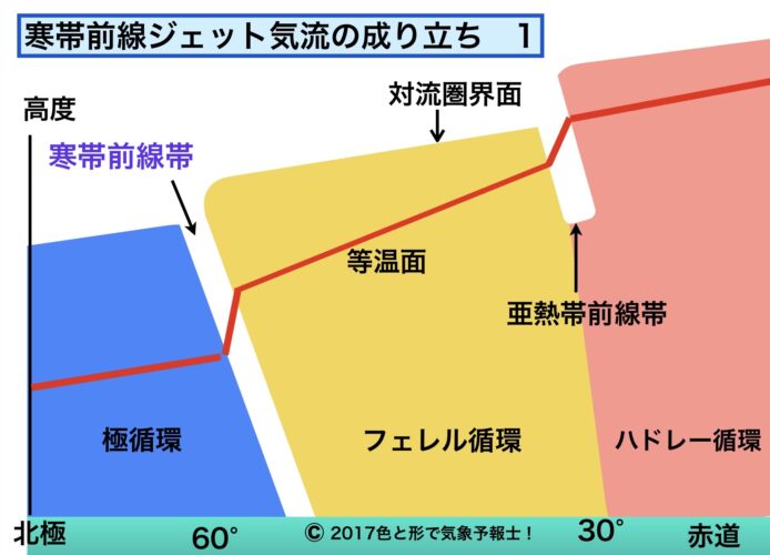 寒帯前線ジェット気流の成因には3つの『温度』が関係しています。