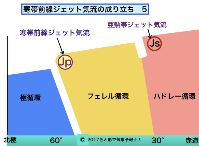 さらに、図「寒帯前線ジェット気流の成り立ち 5」をご覧ください。