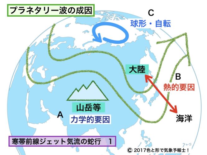 プラネタリー波の成因は以下の3つです。